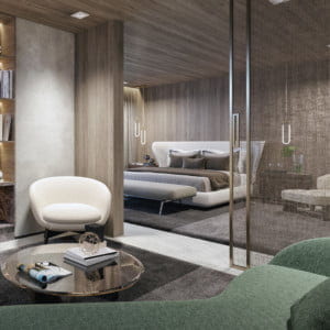 Todos os apartamentos têm a sala de estar preenchida por três ambientes diferentes e se aproveitam de um toque “caseiro” com churrasqueira gourmet interna, adega e lareira. Na área íntima, family room e quatro suítes, sendo a master um oásis com lareira, banheiros e closets individualizados (Sr. e Sra.), abrigam o sono e sonho de toda a família. A varanda é um mundo à parte, com piscina aquecida, sauna com ducha e churrasqueira.